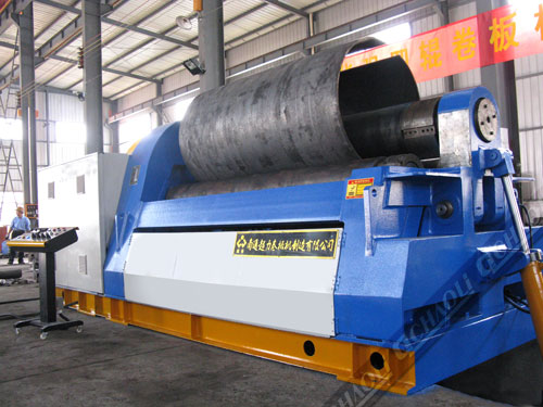 該W12數控四輥卷板機具有板材端部的預彎功能,能將金屬板材一次上料,不需調頭即可完成板端預彎和工件的卷制成形。該機上工作輥為主驅動輥,下輥和兩側輥的升降均采用液壓傳動,升降位移由計算機控制,自動調平,屏幕顯示,翻轉軸承體的傾倒和復位采用液壓傳動,上輥的尾部裝有平衡機構,可以方便卸出卷制后的工件及筒體。設有移動式Du立操作臺,可隨時移動操作,機器設有安全聯鎖裝置,該機技術水平高,功能全,精度高,操作方便。是能源、交通、石油、化工、鍋爐、造船、水電、金屬結構等行業卷制圓形、弧形和錐形工件理想的機型。