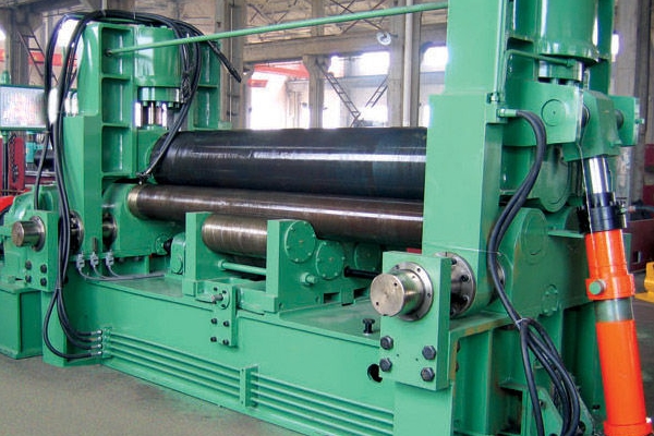 四輥卷板機卷制時板料對中方便,工藝通用性廣,可以矯正卷制時產生的扭斜、錯邊等缺陷;同時一次上料即可完成板料端部預彎和卷制成形,剩余直邊小,是卷制圓形、弧形工件的理想設備。
