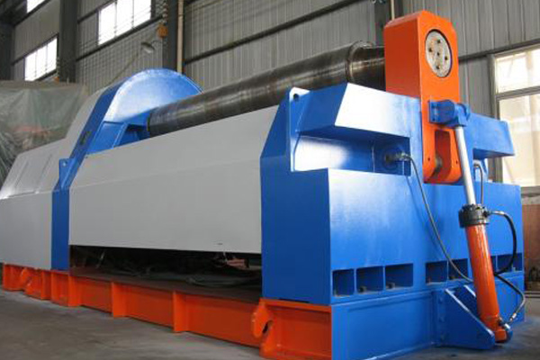 卷板機是一種能夠?qū)⒎墙饘侔宀膹澗沓慑F體、球面體、筒體或者其它外形的一種公用鍛壓機器設(shè)備。卷板機上輥在兩下輥中央對稱位置通過液壓缸內(nèi)的液壓油作用于活塞作垂直升降運動,通過主減速機的末級齒輪帶動兩下輥齒輪嚙合作旋轉(zhuǎn)運動,為卷制板材提供扭矩。